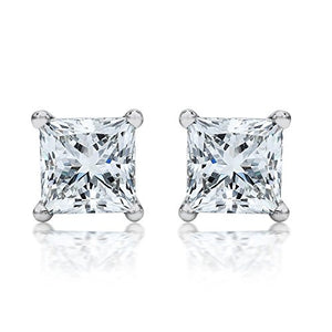 1/4 Carat 14K White Gold Solitaire Diamond Stud Earrings Princess Cut 4 Prong Push Back (G-H Color, I1 Clarity)