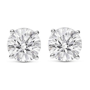 Features of 2 Carat Total Weight White Round Diamond Solitaire Stud Earrings Pair set in 14K White Gold 4 Prong Push Back (K-L Color I1-I2 Clarity)