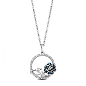 - Officially Licensed Disney Jewelry - Enchanted Disney Fine Jewelry Cinderella 70th Gardania Flower Circle Pendant Necklace in Sterling Silver 1.25MM Round London Blue Topaz and 1/6 Cttw Natural White Round Diamond