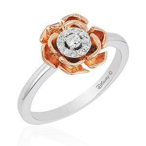 Jewelili Enchanted Disney Fine Jewelry 14K White and Rose Gold 1/10 Cttw Diamond Belle Fashion Ring