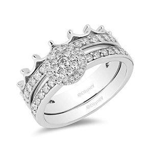 Jewelili Enchanted Disney Fine Jewelry 14k White Gold 1/2 Cttw Diamond Majestic Princess Crown Bridal Set Ring