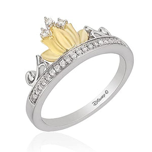 Jewelili Enchanted Disney Fine Jewelry Sterling Silver and 10K Yellow Gold 1/10cttw Tiana Water Lily Tiara Ring