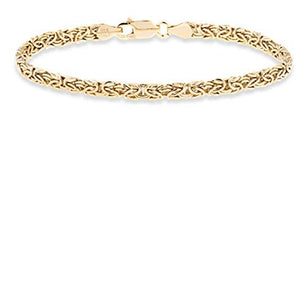 Polished links are beautifully woven to create an Italian timeless classic that remains iconic to this day. Both delicate and bold, this flat, domed dainty bracelet makes a chic fashion statement and instantly elevates a casual look or dressy outfit. Wear alone for simple luxury or stacked with other favorites. This slim and stylish Byzantine bracelet in 18K gold over sterling silver is one of the most elaborate designs in jewelry with each chain link individually woven. Looks just as beautiful worn alone or paired with other bracelets. Crafted in Italy, this is sure to become a timeless staple.