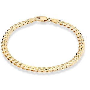 Our flat diamond-cut beveled links are much more reflective than the standard Curb chain for a rich, perfect shine. Strong and durable for daily wear yet not too thick for a comfortable fit. A chain that gives modern elegance to both casual and formal outfits, wear it solo for an everyday polished look or stack with other bracelets for a cool fashion statement. Make a cool statement with this solid 18K gold over sterling silver 5mm wide Cuban Curb bracelet. Like no other Curb chain in the market, our special diamond-cut offers a much more reflective look than a standard Curb chain. Made in Italy
