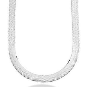Add cool luxury with this bold 10mm wide 925 sterling silver herringbone chain. Silky smooth intertwined polished links lay flat on the neck to form a sophisticated and unique design with brilliant shine. This thick chain is strong, flexible and comfortable for daily wear. A timeless statement necklace that instantly elevates a casual look or dressy outfit, it brings modern elegance to your everyday look. Wear alone or layered with other chains for a luxurious on-trend style. Wear alone or layered with other lengths to make a statement. Lays flat, smooth and comfortable on the neck. Made in Italy