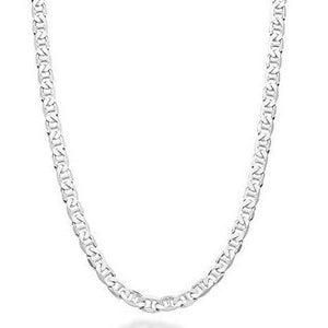 The wide iconic oval links are polished then diamond-cut to give this beveled chain a rich shine. Strong and durable for daily wear, this simple necklace lays flat for a comfortable fit. Wear alone with a casual or formal outfit for everyday modern elegance, with a favorite pendant for a cool statement or as a great layering chain. Slim, understated and ready to be worn with everything. Make a cool statement with this solid 925 sterling silver 3mm, 4mm, 6mm, 7mm Mariner chain. A slim unisex style ready to be worn with absolutely everything. Lays flat, smooth and comfortable on the neckline. Made in Italy.