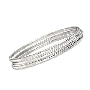 - STERLING SILVER — Italian sterling silver jewelry set: three polished bangle bracelets. Polished finish. Each bangle can be worn separately. The set together is 8.5 in. long by 3/8 in. wide. Slip-on.