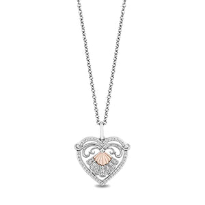 Jewelili Enchanted Disney Fine Jewelry Sterling Silver and 10K Rose Gold 1/5 Cttw Natural White Round Diamond Ariel Heart Pendant Necklace, 18" Cable Chain