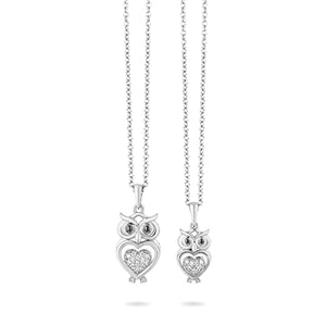 Jewelili Hallmark Fine Jewelry Two-of-a-Kind Owl Pendants in Sterling Silver with Diamonds