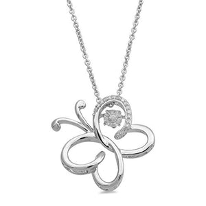 - Eloquent Expression: The Butterfly Pendant with its natural white round dancing diamonds is an eloquent expression of emotions captured in sterling silver.