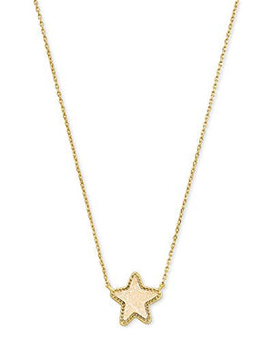 Accessorize with elegance and sparkle by adorning yourself with the captivating Kendra Scott Jae Star Gold Pendant Necklace in Iridescent Drusy. This necklace combines an iconic symbol with timeless design for a truly enchanting piece.