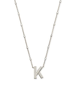 Kendra Scott Letter K Pendant Necklace for Women, Fashion Jewelry, Rhodium-Plated Brass, Rhodium Metal, Letter K