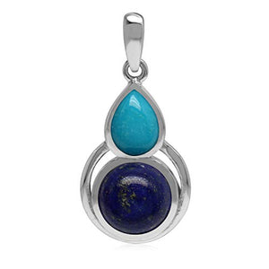 Add a touch of elegance and sophistication to your jewelry collection with this stunning pendant from Silvershake. Made with genuine Lapis Lazuli and Arizona American Turquoise stones, this pendant features a beautiful combination of blue hues that will complement any outfit.