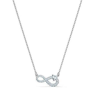 • Items delivered: 1 x Swarovski Infinity pendant necklace with a heart-shaped white crystal stone accenting a crystal pavé infinity symbol on a rhodium plated chain, with Swarovski necklace box