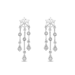 Jewelili Enchanted Disney Fine Jewelry 14K White Gold 1/10 Cttw Diamond Elsa Frozen Dangling Earrings