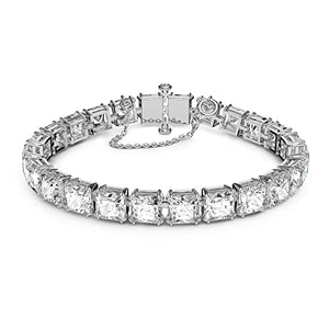 Introducing the Swarovski Millenia Bracelet, a masterpiece in the art of jewelry, where every detail reflects elegance and sophistication. This articulated bracelet is a testament to the timeless beauty of square-cut crystals, set in a rhodium-plated prong setting, and adorned with a hidden fastening for a seamless finish.