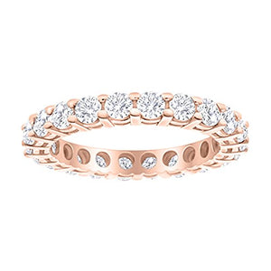This exquisite eternity band, graced with round diamonds set in lustrous rose gold, encapsulates timeless beauty. Its continuous circle represents unending love, making it a perfect symbol for wedding anniversaries or any special occasion.
