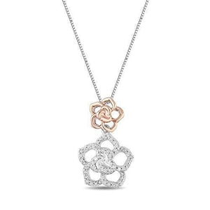 - Jewelili Enchanted Disney Fine Jewelry 14K Rose Gold Over Sterling Silver 1/5Cttw Belle Rose Pendant