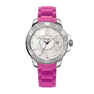 • Sporty-Chic Link Design: The fuchsia silicon rubber strap in a trendy link design complements the zirconia-set bezel, creating a truly sporty-elegant look. The strap's playful color is repeated on the dial and second hand, adding a burst of summer flair to your ensemble.