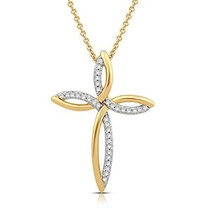 Features of Jewelili 18K Yellow Gold over Sterling Silver 1/8 Cttw Natural White Round Diamond Cross Pendant Necklace, 18" Rolo Chain