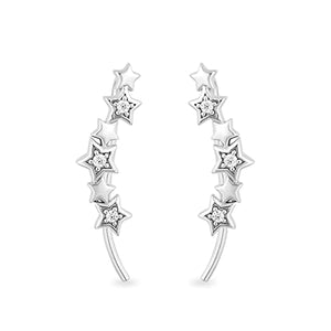 Jewelili Hallmark Fine Jewelry Sterling Silver with Natural White Round Diamond Accents Star Dusted Ear Climbers Earrings