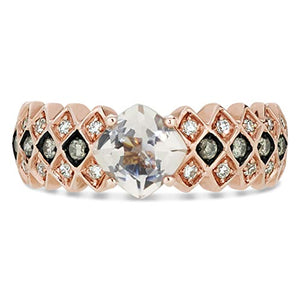 LeVian 14K Rose Gold, Cushion Cut Morganite & 1/4 Cttw White/Chocolate Diamond Zig-Zag Engagement Ring (H-I/Fancy Brown Color, SI1-SI2 Clarity)
